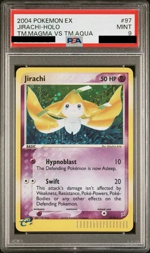 2004 Pokemon EX - TM. Magma vs TM. Aqua - Jirachi Holo - PSA 9